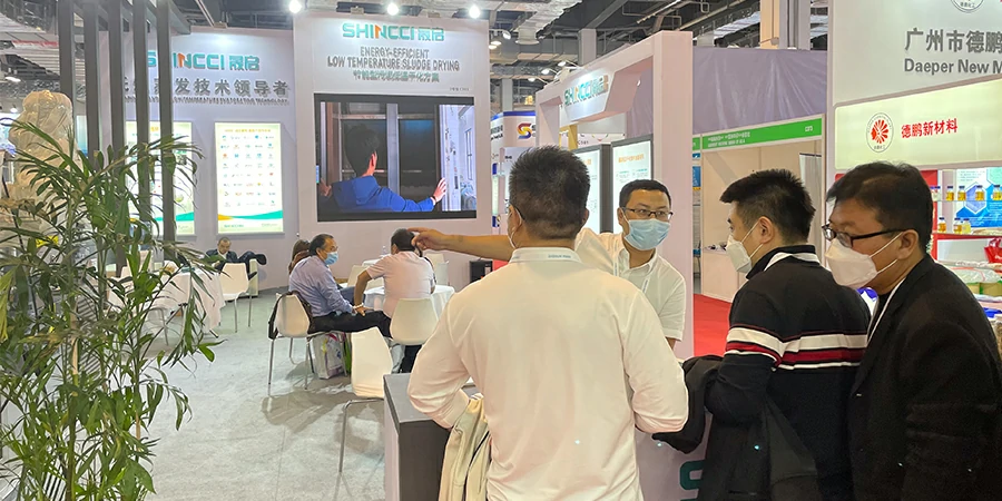 Guangzhou Shincci Energy Equipment Co., Ltd. has been intensively engaged in the application of low-temperature evaporation and dehumidification technology. In response to the "low-temperature evaporation sludge drying" demand in the printing and dyeing field, Shincci can provide customers with comprehensive sludge drying solutions. During the dye exhibition, Shincci's engineers had in-depth discussion with customers on their request.