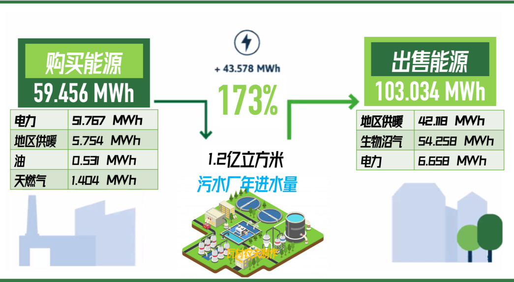 On the other hand, the total power output of the sewage plant in 2016 reached 4.8GWh, which means that the power generation of the plant is 53% more than the power consumption. This excess power will be sold to the national grid, and there is more than 2.5GW of surplus The heat energy is directly used for district heating.