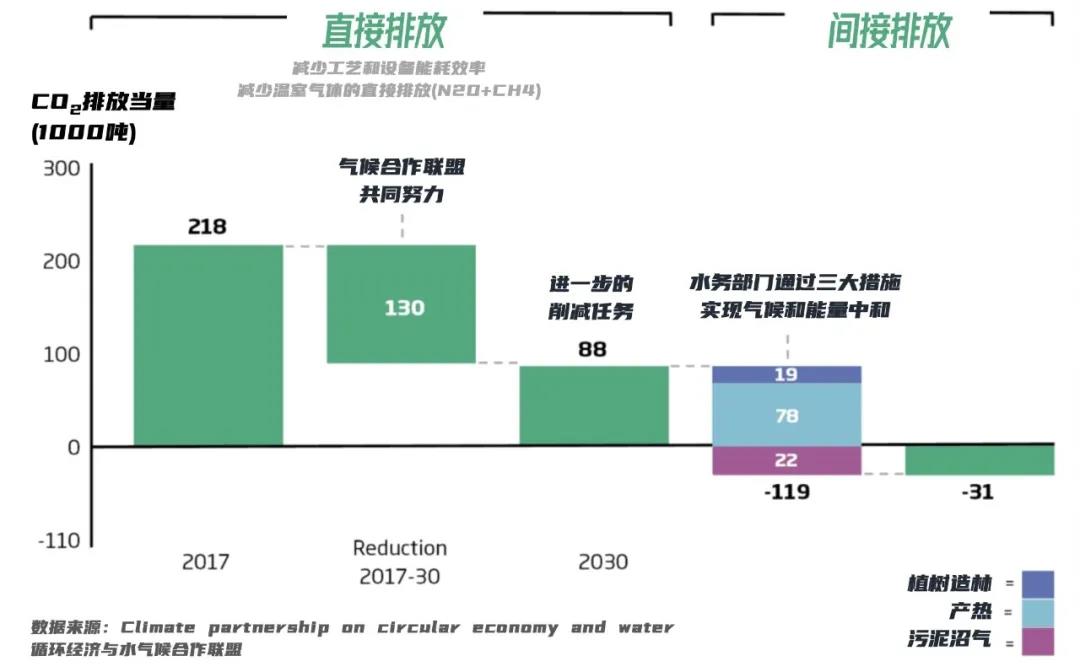 This plan includes the reduction of direct and indirect emissions. Direct emissions are mainly to reduce N2O and methane emissions, improve the energy efficiency of the process, and increase the production of biogas. Measures to improve indirect emissions mainly refer to improving the utilization rate of effluent waste heat and afforestation.