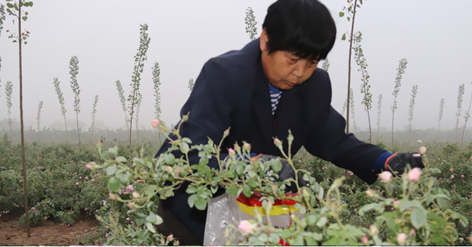 The modern rose industrial plantation in Guanxian, Liaocheng, where Damascus roses are planted, with an area of about 3,000 acres, is located in Zhaodangpu Village, Dianzi Town. Thanks to the innate climate and geographical location, the quality of the roses grown excellent and high nutritional value. The picking period is entered at the end of April every year, and the yield per acre can reach more than 400 kg.