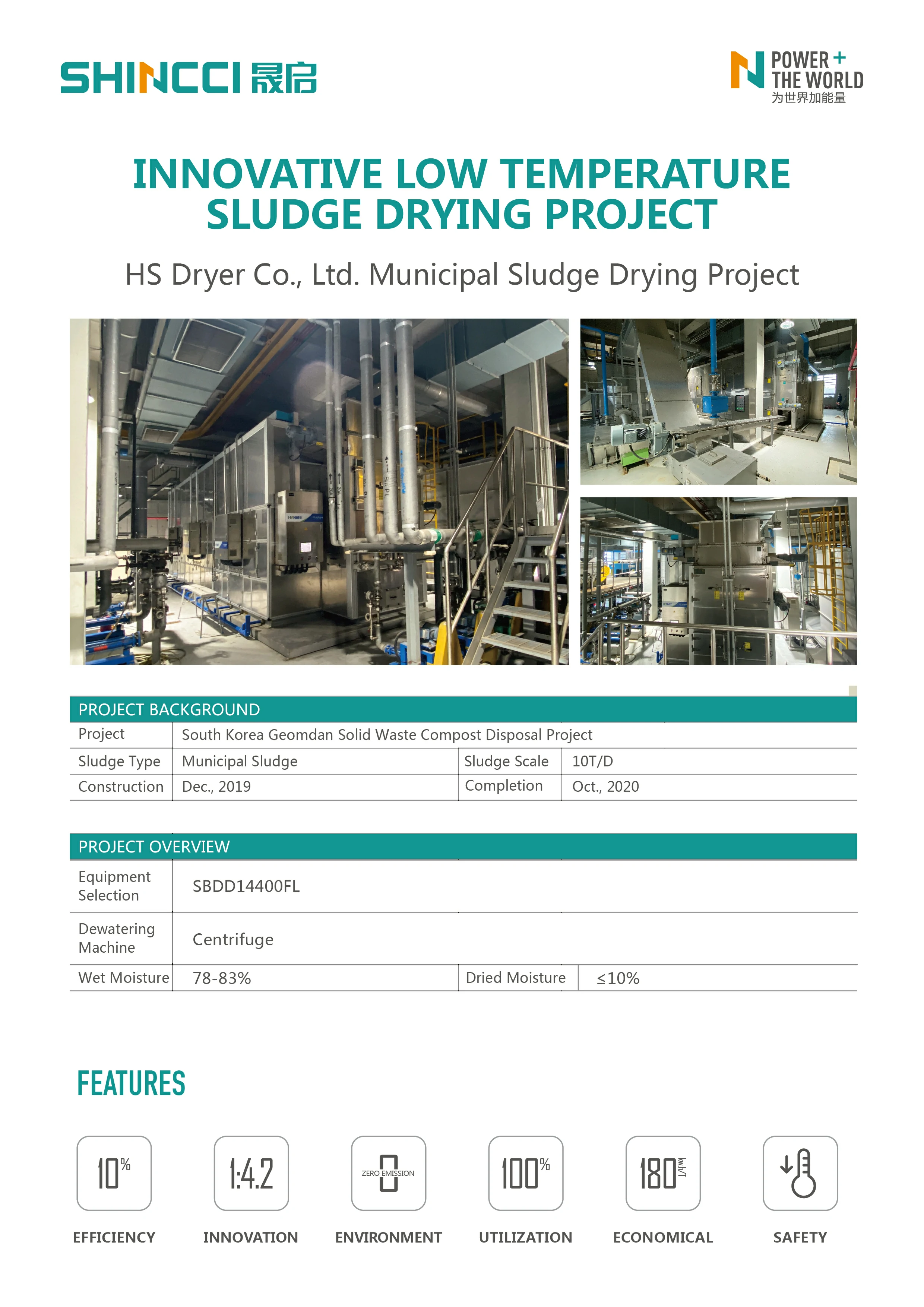 During the trip to Korea, Mr. Shi Zengkuang, General Manager of Shincci, said with emotion: "In this golden period of the development of the environmental protection equipment industry, we cherish the opportunities given by the times. Shincci will continue to contribute to the development of the environmental protection service industry with continuous innovation. We cherish the trust our partners have given us. We will strive to expand the municipal sludge drying business in South Korea rapidly through the joint venture HS. Up to now, 367 sludge drying projects of Shincci have been accumulated, (47 in electroplating plants, 168 in chemical industry, 3 in lether factory, 122 in municipal industry, 25 in pharmaceutical industry, 2 in Coal washing industry )and more than 8471T/D wet sludge treatment capacity. For fifteen years, Shincci team have made unremitting efforts to turn market doubts into gradually accepted and recognized the application of "low temperature condensation dehumidification technology" in sludge reduction."