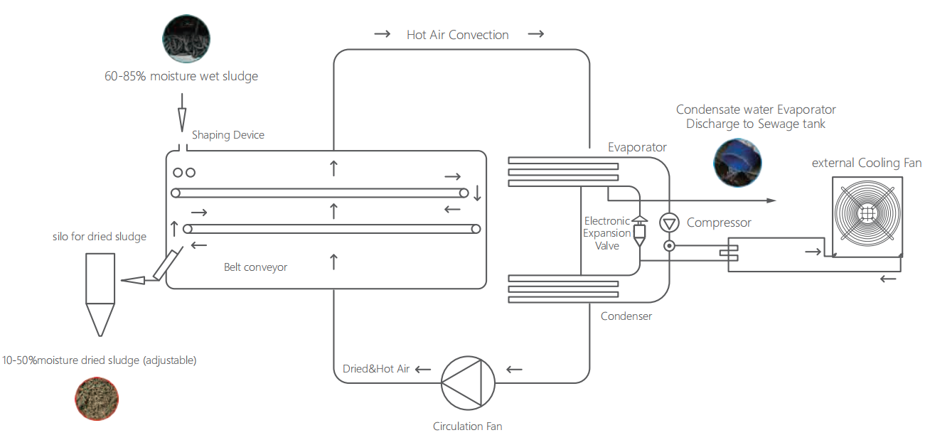 MHR INTEGRATE LOW TEMP. MULTI-EFFECT HEAT-RECOVERY SERIES BELT-TYPE SLUDGE DRYER