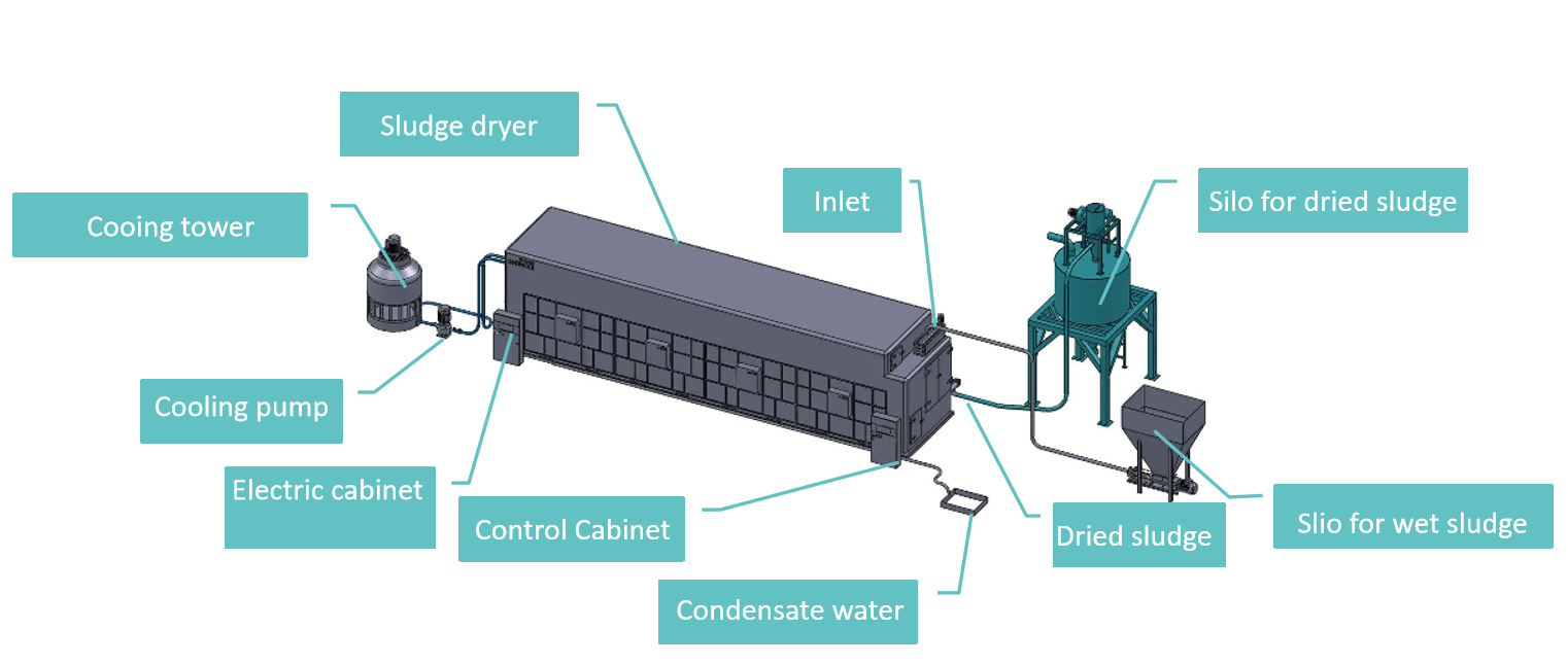 Easier cleaning and maintenance: two modules share one blower which is not under the sludge conveying belt.