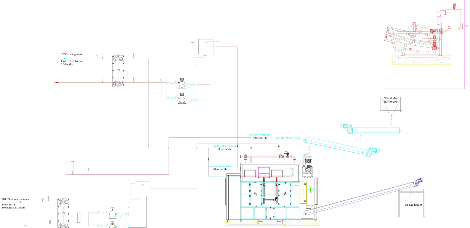 90% of traditional sludge thermal drying system converts heat into exhaust heat loss (latent heat and hot air sensible heat)