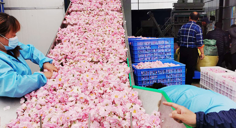 The Damascus rose, known as the "queen of the rose kingdom", is the main rose variety planted in Bulgaria and is also recognized as a high-quality rose variety worldwide. The leaves are grayish green and the flower stems have hard hairs; Double petal flower with slightly lighter edge color and a silky texture. After drying, cell fluid is collected, and essence and spice products such as essential oil, extract and pigment are further processed and extracted.